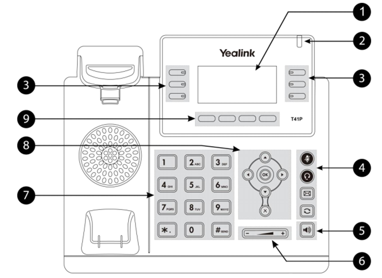 6 - Touche de volume : Pour ajuster le volume du casque, combiné, haut parleur et sonnerie.